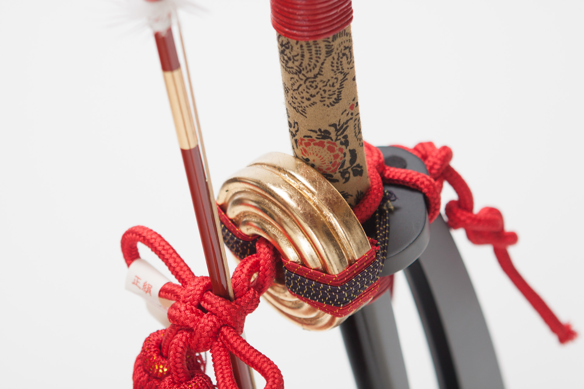 畠山重忠より建久2年(1191年)に奉納されたと伝える、「国宝 赤糸威大鎧」を望月人形別注作品として甲冑師四代目雄山に制作して頂きました。本作品は四分之一サイズに制作されており、実際の大鎧同様に本仕立て(作りを簡素化していないこと)仕様となっております。一つ一つの技術は最高の出来を示しており、価値の高い鎧です。