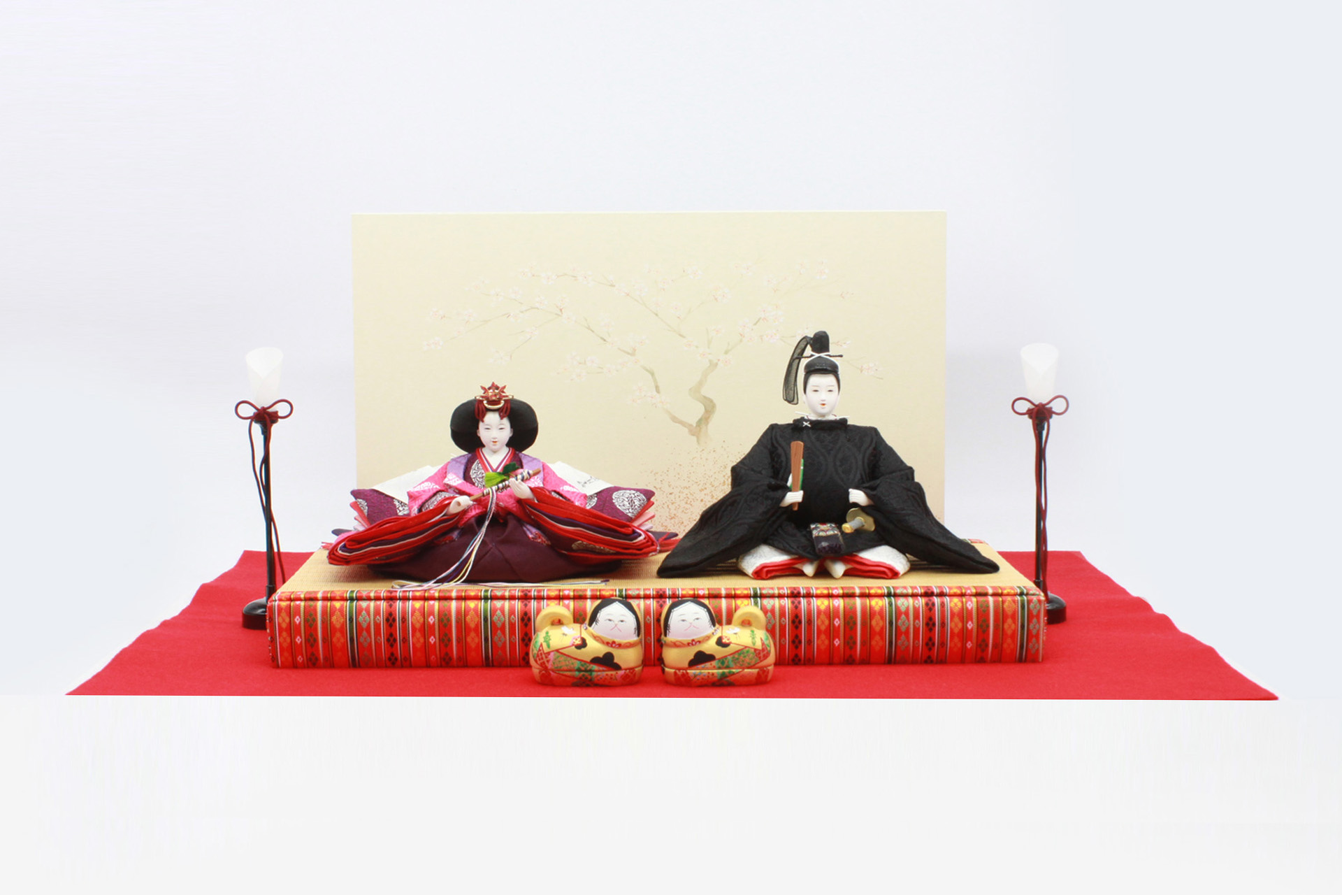 「雲居」とは宮中や皇居のある場所を指します。特に、宮中を訪れる際に「雲居へ行く」という表現が使われました。また、「雲居の桜」と云う言葉があり、宮中の桜や皇居にある桜、紫宸殿の桜のことを差します。他にも「雲」のある場所や大空の意味もあるため、男雛の黒袍「雲立涌」で「雲」を表現。女雛の唐衣「向かい蝶」で「春」を表現し、そして屏風の桜は、宮中の庭に見立てて制作したのが「雲居雛」です。