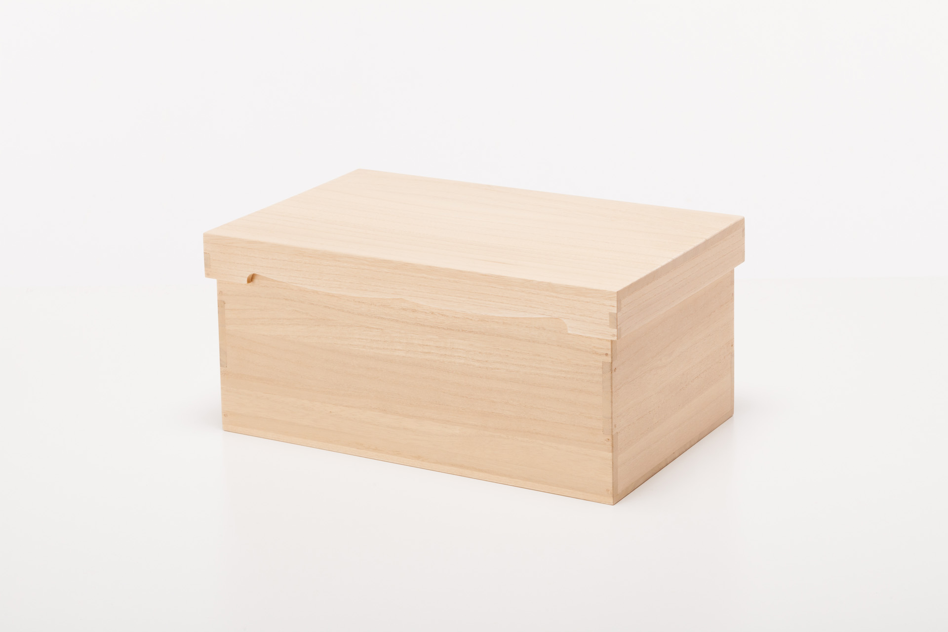 収納箱の飾台は、大分の職人さんに特別製作して頂いた桐の箱です。箱は工芸品らしく木釘や差込式に作ってあります。小さいながらも完成度の高い作品です。