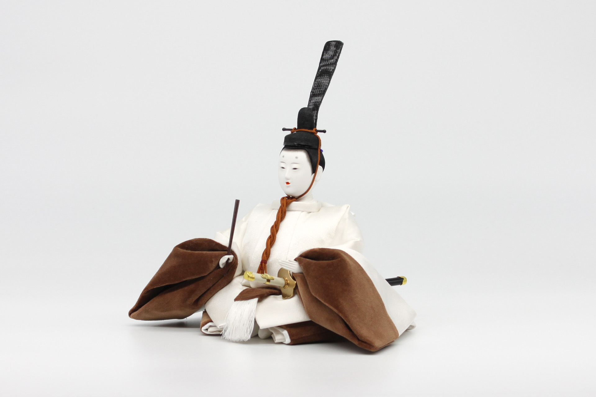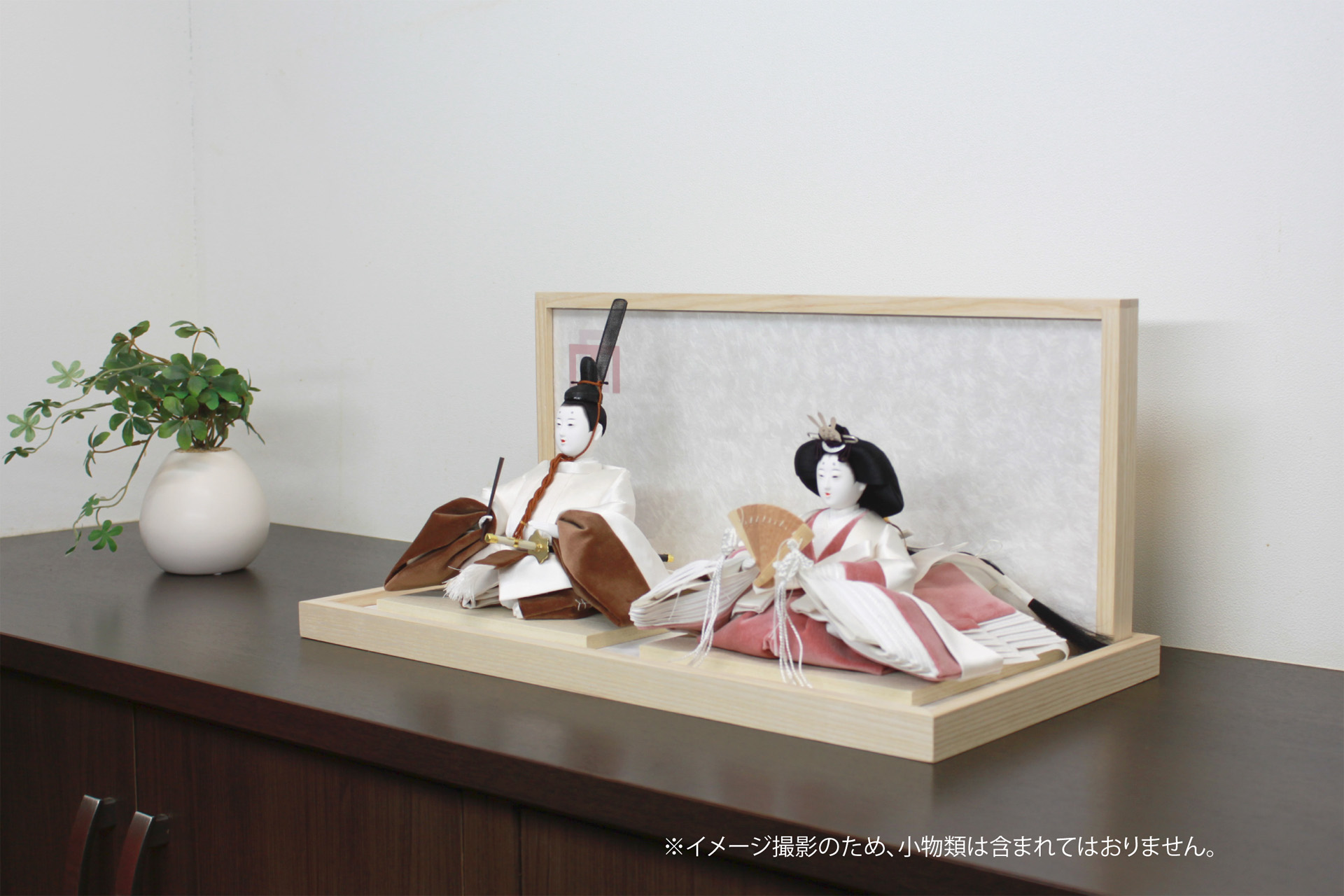 飾り台も人形本体に合わせシンプルにデザイン。組み方も大変簡単で衝立は、親王台で固定するような形で差し込みます。親王台は、固定してありますのでセッティングが簡単です。仕舞う際は、衝立を外して飾り台の上に置きます。親王台は、固定してありますので簡単に仕舞えます。