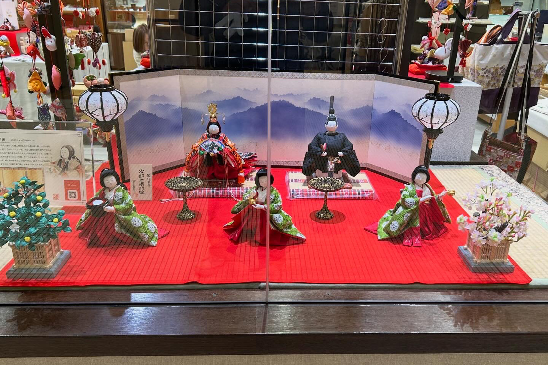 2026年1月27日(火)〜2月24日(火)まで静岡駅構内にあるアスティ静岡内 駿府楽市にて「楽市ひなまつり展」が開催されます。当店の作品も展示されます。今回は、ちょっとスタイルを変えた次郎左衛門雛(立像)、次郎左衛門官女(関東風仕立て)を展示いたしました。