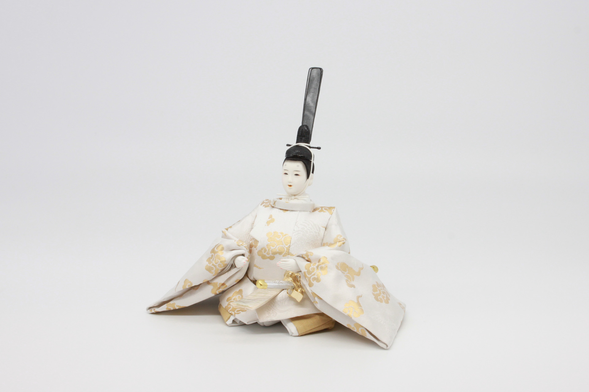 お殿様とお姫様は白糸と金糸を組み合わせて織り上げた「雲鶴文様」を使用。雲鶴文様は「瑞雲」と「鶴」を組み合わせた有職文様です。