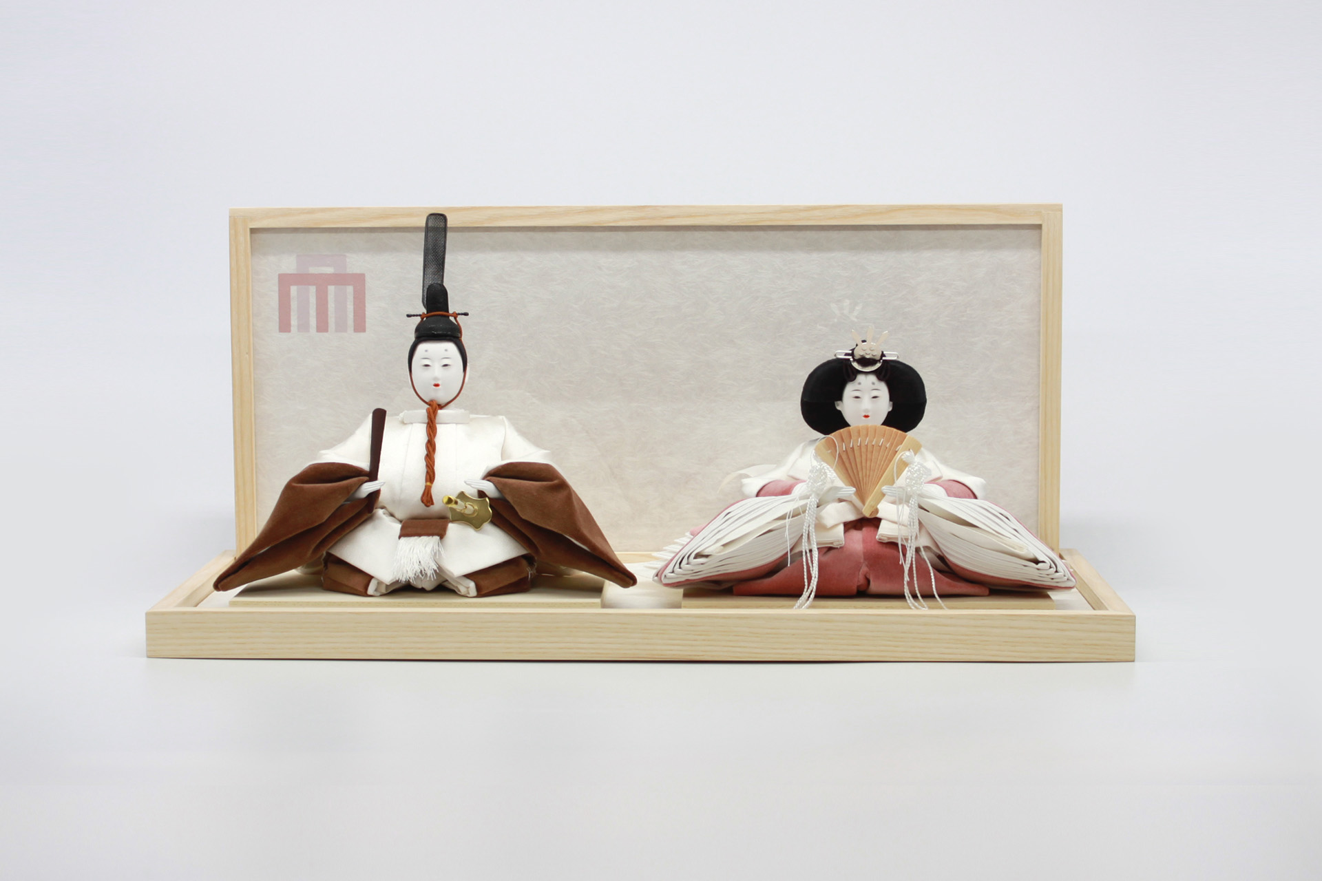 飾り台も人形本体に合わせシンプルにデザイン。組み方も大変簡単で衝立は、親王台で固定するような形で差し込みます。親王台は、固定してありますのでセッティングが簡単です。仕舞う際は、衝立を外して飾り台の上に置きます。親王台は、固定してありますので簡単に仕舞えます。