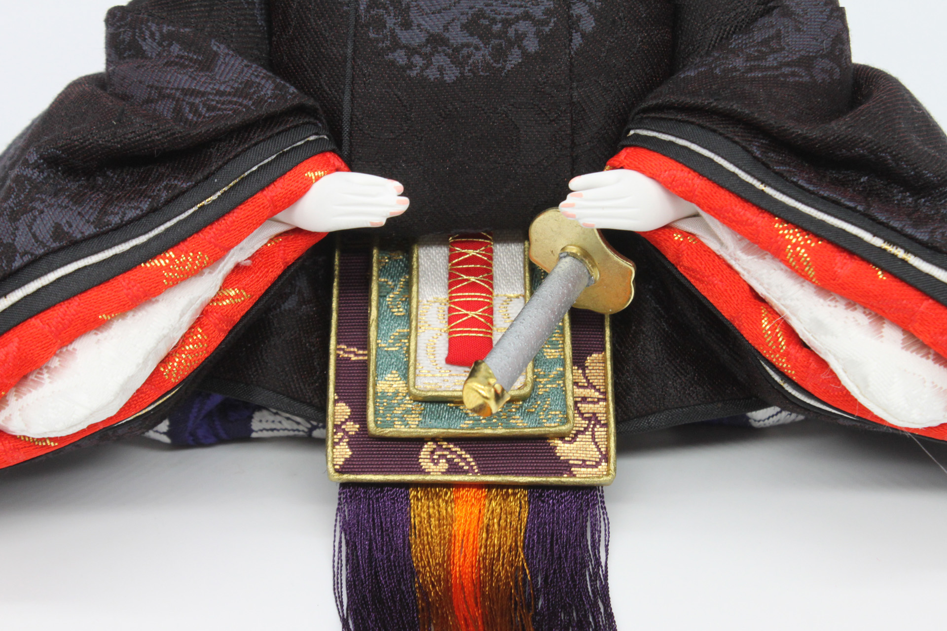 お雛様の手足は京人形手足師「澤野正」作の手足を使用しております。京都の澤野家は頭師で著名な川瀬猪山の流れを汲む作家一族で、古くは人形頭も製作していたが現在は桐の手足を専業としている。正氏は実父である「澤野公一氏」に師事したが、早くに逝去した為、100年前と同じ製法を堅持しつつ、ほぼ独学で現在の製品を完成させた。京人形手足師は正氏しかおらず、氏の技術は大変貴重なものとなっている。