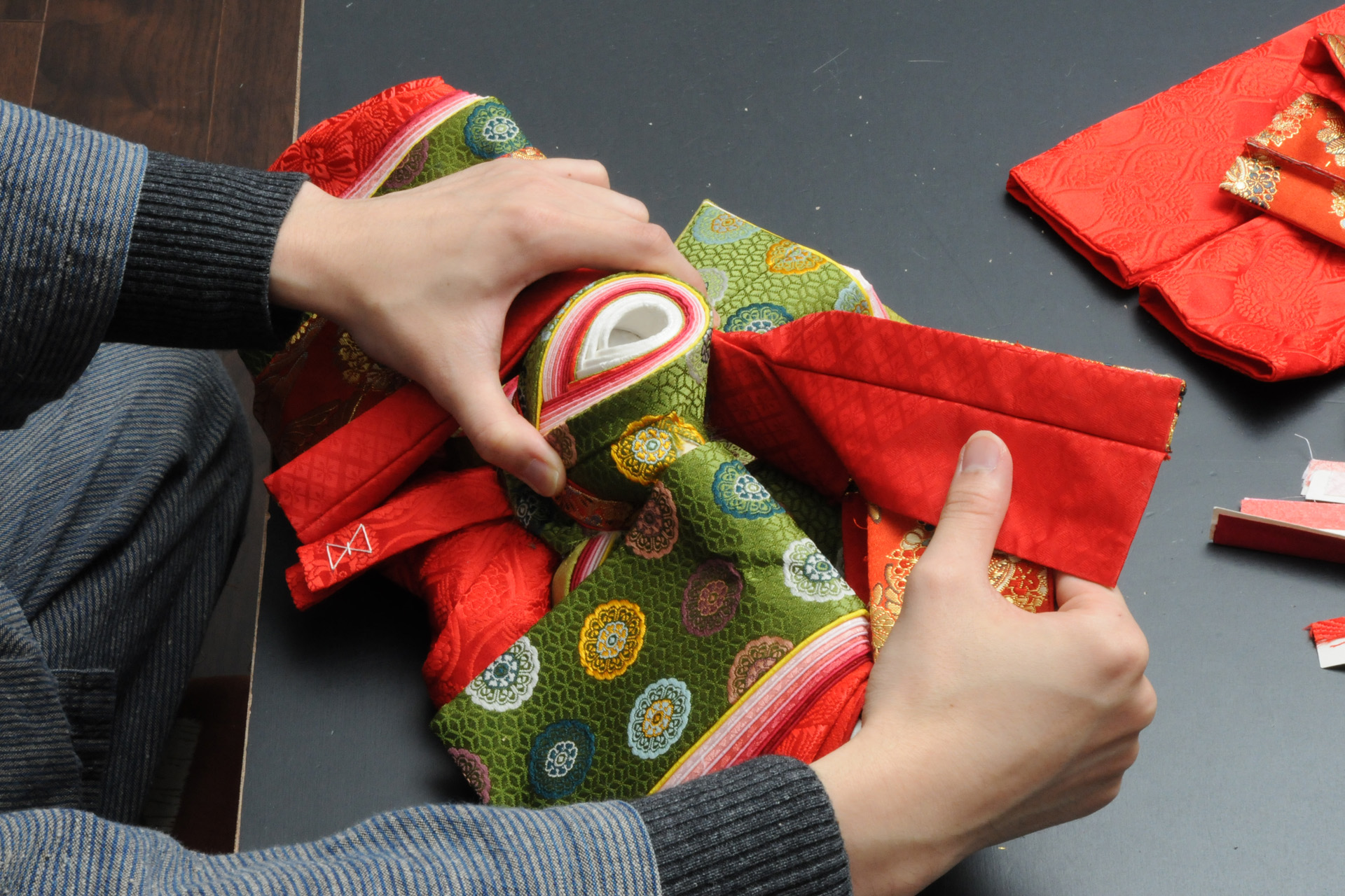 必要なパーツを手縫いやミシンで縫い合わせて形作っていく。