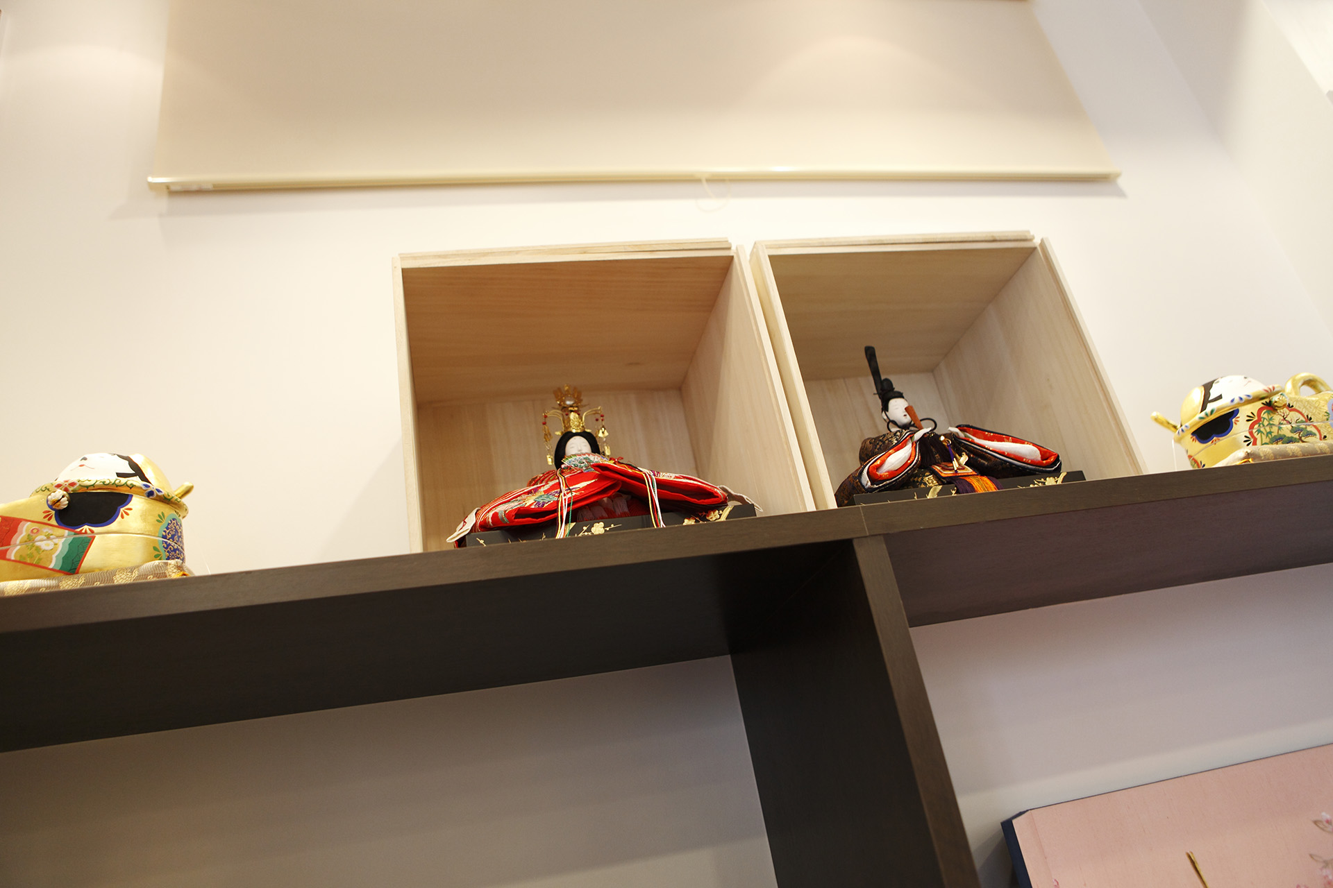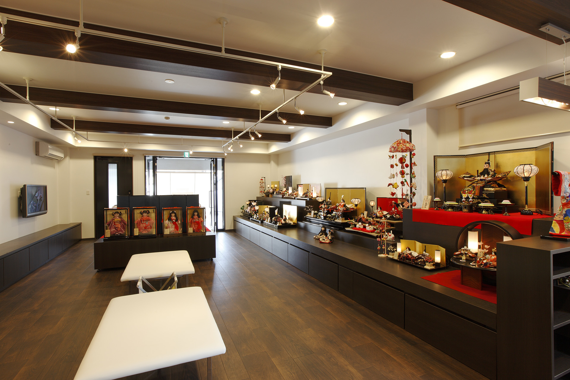 外観とは打って変わって店内は白をベースにした落ち着いた雰囲気。一生に一度のお買い物だからこそ、ゆっくりとくつろぎながら大切なお子様への贈り物をお選びください。